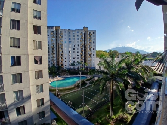 Arrendamos este lindo apartamento, iluminado, con balcón y hermosa vista hacia las piscinas y zonas verdes del conjunto. Tres amplias habitaciones, la principal con balcón y baño privado, las otras dos habitaciones comparten el baño social. Cocina abierta con barra estilo americano, zona social con salida a un amplio balcón al que también se accede por las habitaciones auxiliares, tiene un espacio para estudio y un garaje. Ubicado en el Conjunto Residencia Yerbabuena, con zonas sociales disfrutables como canchas múltiples, tres piscinas, senderos, zona bbq, gimnasio, lavandería, parques infantiles, supermercado, vigilancia permanente; con una ubicación estratégica cerca a vías principales, comercio, transporte público, clínicas y restaurantes.